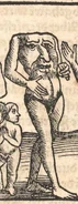 Some authors derive the story of the Blemmyes from this, that their heads were hid between their shoulders, by hoisting those up to an extravagant height. Samuel Blochart derives the word Blemmyes from two Hebrew terms, one a negation, the other meaning "brain", implying that the Blemmyes were people without brains.