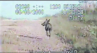 There is also police cam footage of a Chupacabra. It is a video taken in August of 2008 in DeWitt County, Texas, by two police officers. The footage shows a canine-like animal running on the side of the road. The animal in the video appears to be fur-less with a long snout and pointed ears. It is possible that the animal could be a coyote or other canine infected with mange.