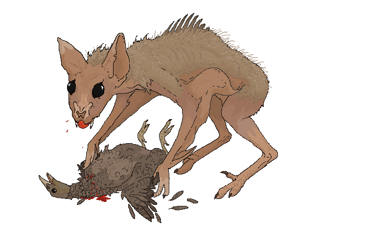 It is claimed that this breed might be an example of a dog-like reptile. Unlike conventional predators, the chupacabras is said to drain all of the animal's blood (and sometimes organs), usually through three holes in the shape of an upside-down triangle or through one or two holes.