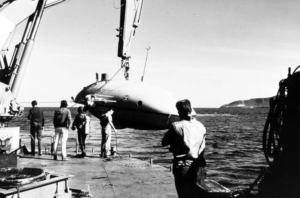 In 1967[2], Pilot Joe Thompson (1930 – 2003) and potentially marine biologist Gene LaFond (1909 – 2002) allegedly spotted this fish during a research dive in the San Diego Trough in June 1966, accompanied by instrumentation engineer Dale Good. They had taken the Deepstar 4000 down to approximately 4,000 feet (1,219 meters) to deploy hydrographical instruments on the seabed. While Thompson glanced through the window, he found himself face to face with a massive fish that briefly swam into view. It swiftly passed, stirring up silt from the seabed, before vanishing. The sighting lasted for about 8 seconds.