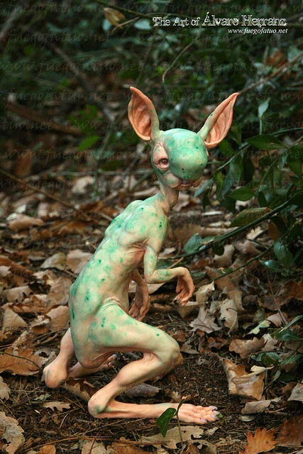 The creature has blue skin, spots around its face and neck. The length is around 12 centimeters long, hobbit like ears, orange eyes and a nose very similar to a rodent.