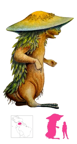 The Kayeri is a cryptid originating from the folklore of the Cuiba people of Colombia and Venezuela. Described as a giant, plant-like humanoid, the Kayeri's appearance varies in visual depictions, ranging from resembling a giant with a large, mushroom-like hat to appearing akin to a ficus tree. Its physiology is predominantly cryptobotanical in nature.[1]