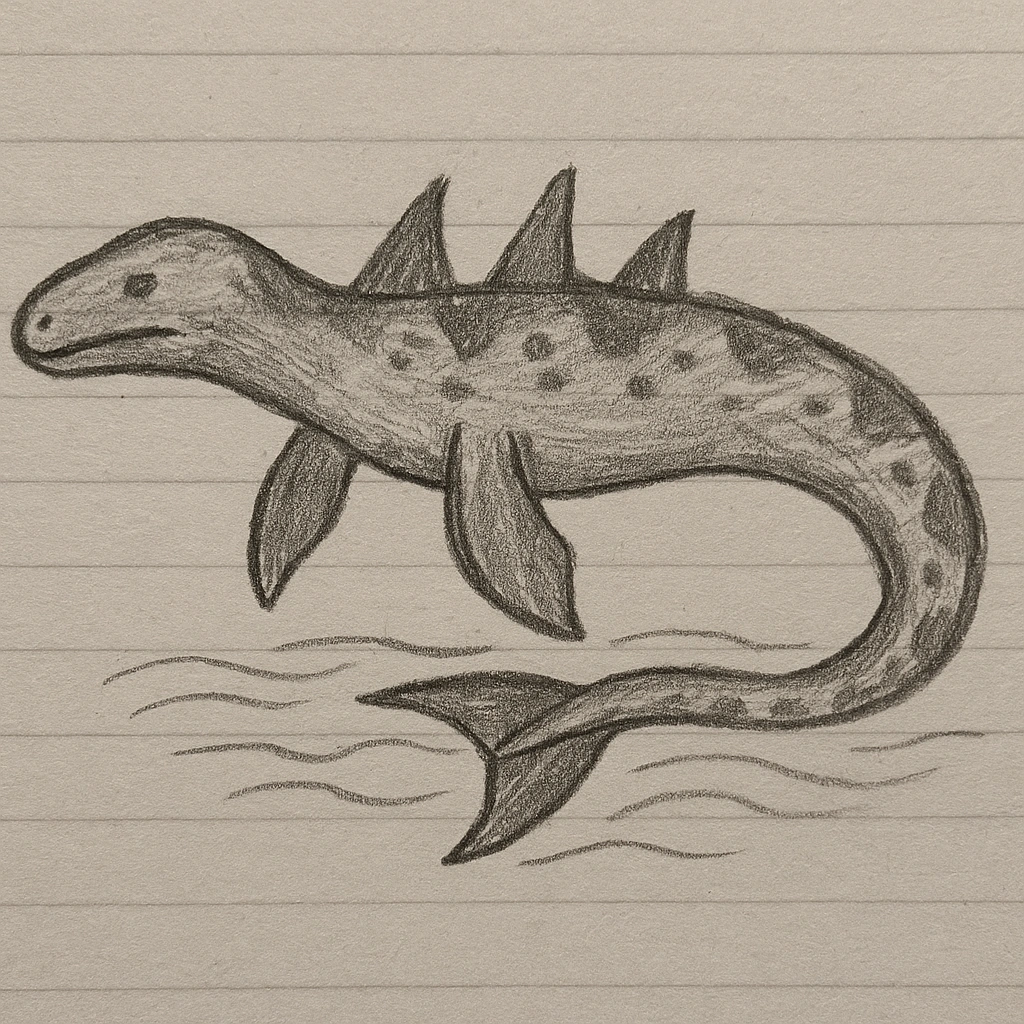 "At least 10 meters long, blackish with slight brown spots on its back. It had fins, but they were hard, not flexible—like the ones a dinosaur has on its tail or head. Like a monster from a movie... like Godzilla. It had no visible legs. The sighting was very brief."
