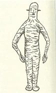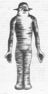 They described the creatures as being roughly humanoid in shape, and standing about five feet tall. The creatures' skin was pale in color and wrinkled, like an "elephant", and they had no eyes that the men could discern, and slits for mouths. Their heads also appeared connected directly to their shoulders, with no discernible neck. There were three "carrot-like" growths instead - one where the nose would be on a human, the other two where ears would normally be. The beings had lobster-like claws at the ends of their arms, and they seemed to have only one leg (Hickson later described the creatures' lower bodies as looking as if their legs were fused together) ending in elephant-like feet. Hickson also reported that the creatures moved in mechanical, robotic ways.