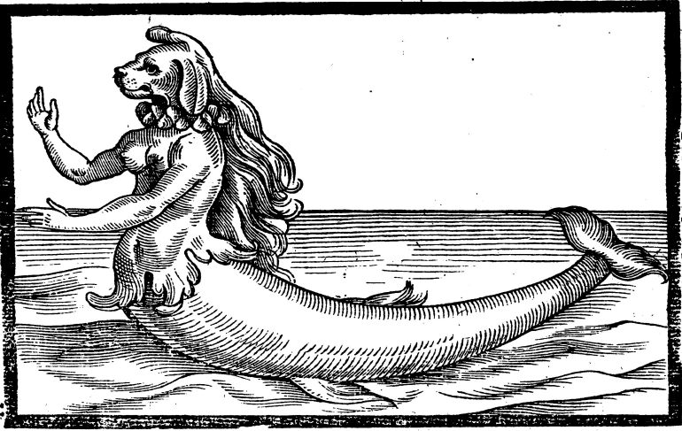 The creature is described as a woman from the waist up, but with a tail below. On the top half she largely had the appearance of a normal woman except for ears like a dog. The Pendine Mermaid is said to be huge, with her back estimated at 3 feet wide and her tail at 12 feet in length. Details of the creature were published in a pamphlet in London along with an artist's sketch.