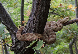 It could also be one of the area’s vipers: Orsini’s viper (Vipera ursinii), the Common viper (V. berus), or the Nose-horned viper (V. ammodytes). The nose horned viper matches Poskok's description the most, but can't jump into the air.