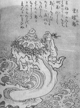 A sazae-oni loves to fill its gills with water and then spray a fine mist into the air, creating the impression of a foggy day.