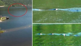 In July, 2001, a father and son from Oslo, who wished to remain nameless, decided to take a quick walk down to the lake for a refreshing swim. When they were about 100 yards away they noticed something strange but assumed that it was either a fallen log or pile of old car tires that had washed ashore over night. The two stopped about 30 feet from the beach as they witnessed what they could only describe as a giant snake just at the waters edge.