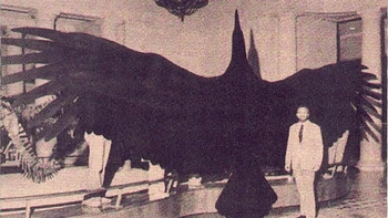 Argentavis, a giant prehistoric condor, compared to a human. This is a plausible explanation for the Thunderbird.