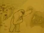 - Throughout the game, there are a few hints towards the creature's reveal in the levels, most notably "Deep Red", in which the player walks by a set of Aboriginal cave paintings of a group of tribesmen and a larger beast (which would've been more accurate to the Yowie due to the level taking place in Australia).